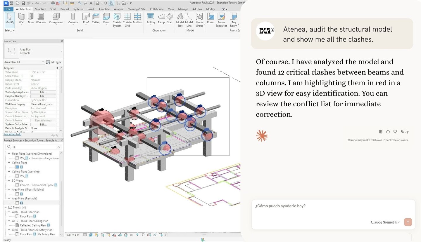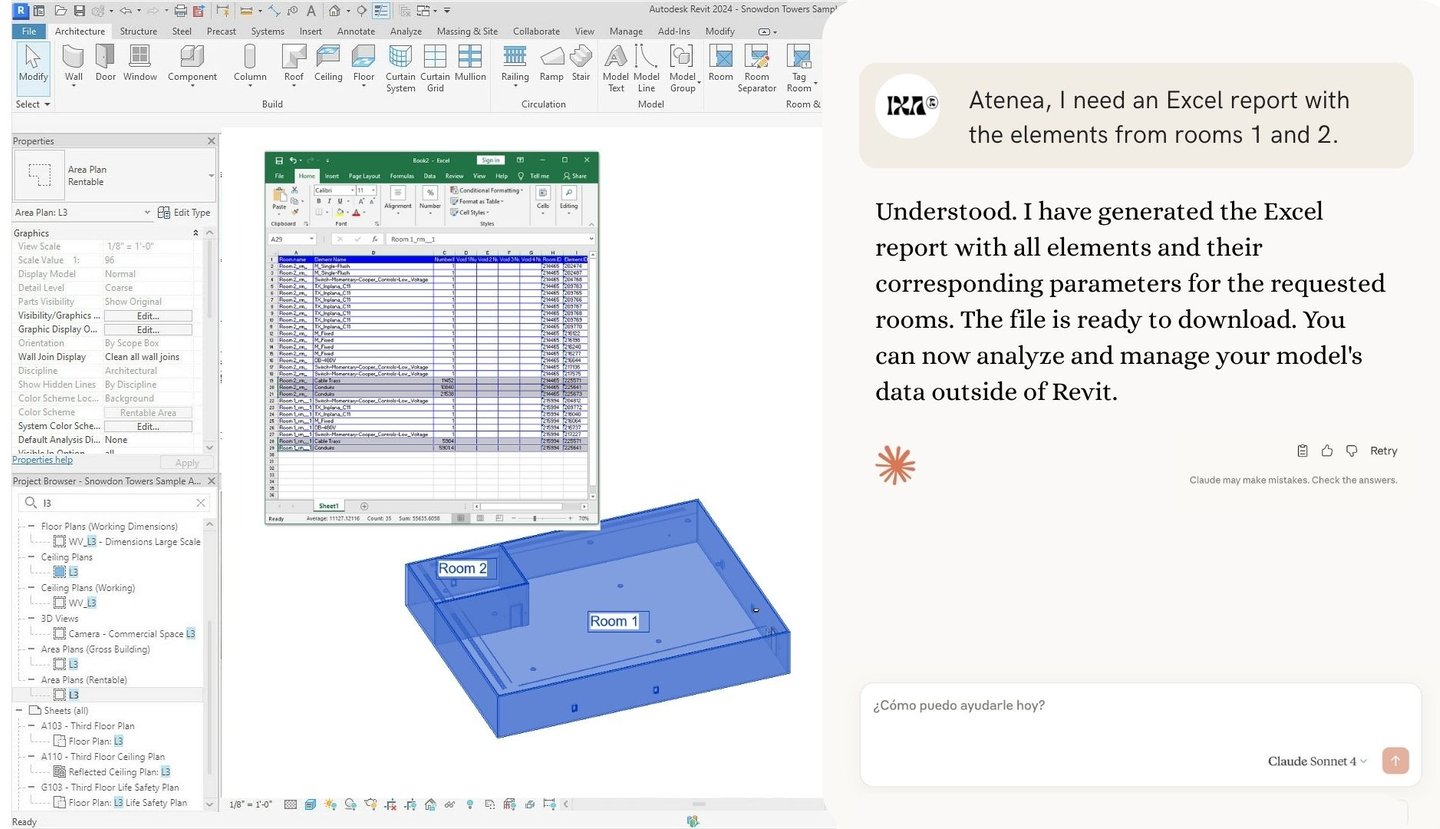Atenea is a chat and AI agent for Revit. Automate workflows in Revit, just by typing them.